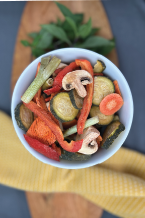 Our veggie crisps are gently fresh-dried to deliver bold flavor, vibrant nutrients, and an irresistibly crispy crunch—no oils, powders, or additives. Just real vegetables, perfectly crisp and snack-ready.
