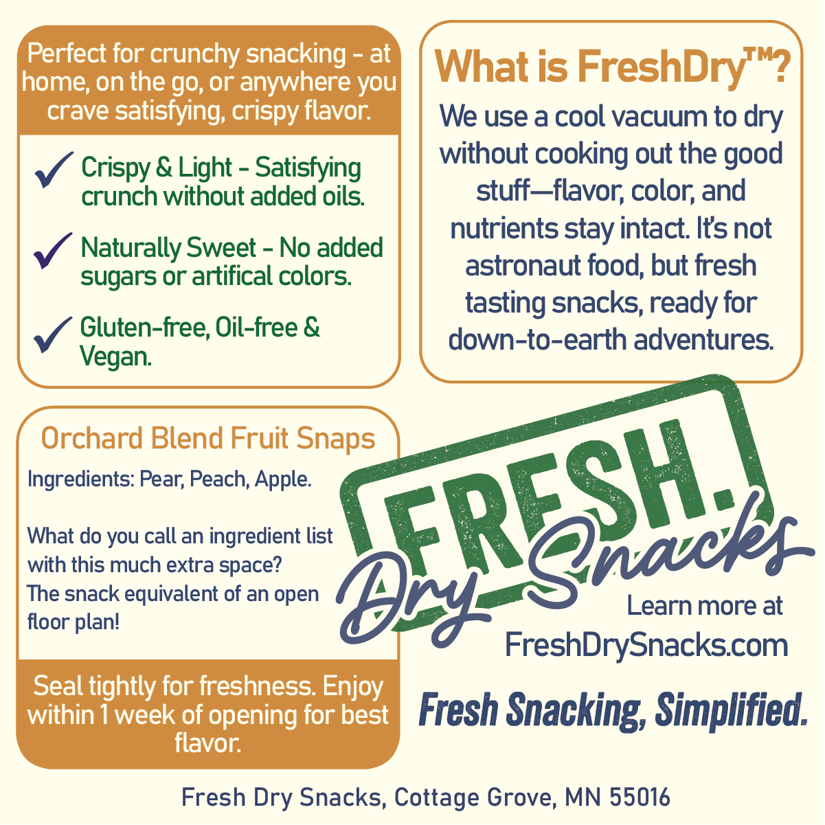 Ingredients: Honeycrisp apples, peaches, pears, vitamin c (to prevent browning).